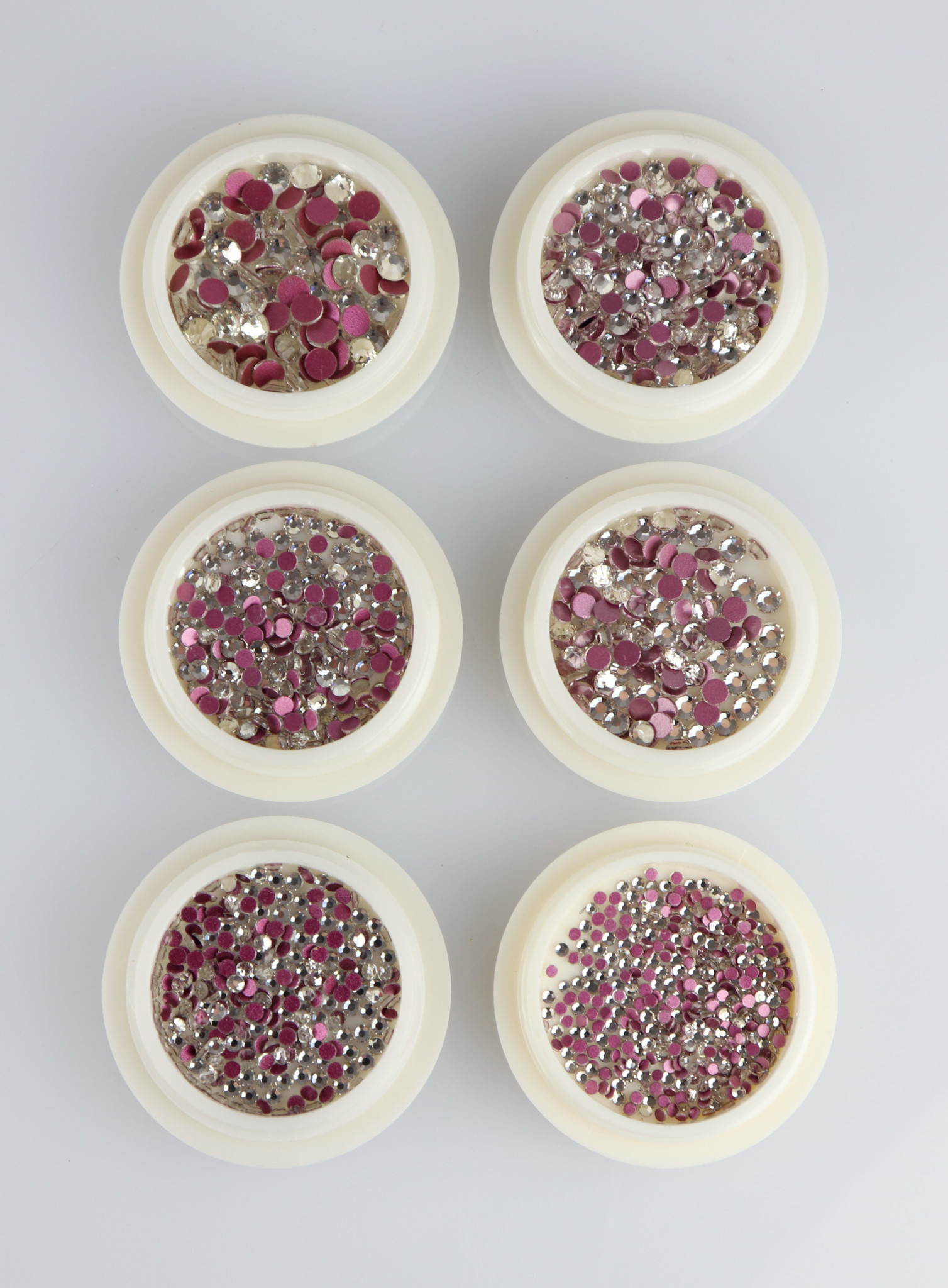Prachtige strass stenen in verschillende kleuren en grootte. Deze set bevat 6 verschillende potjes.