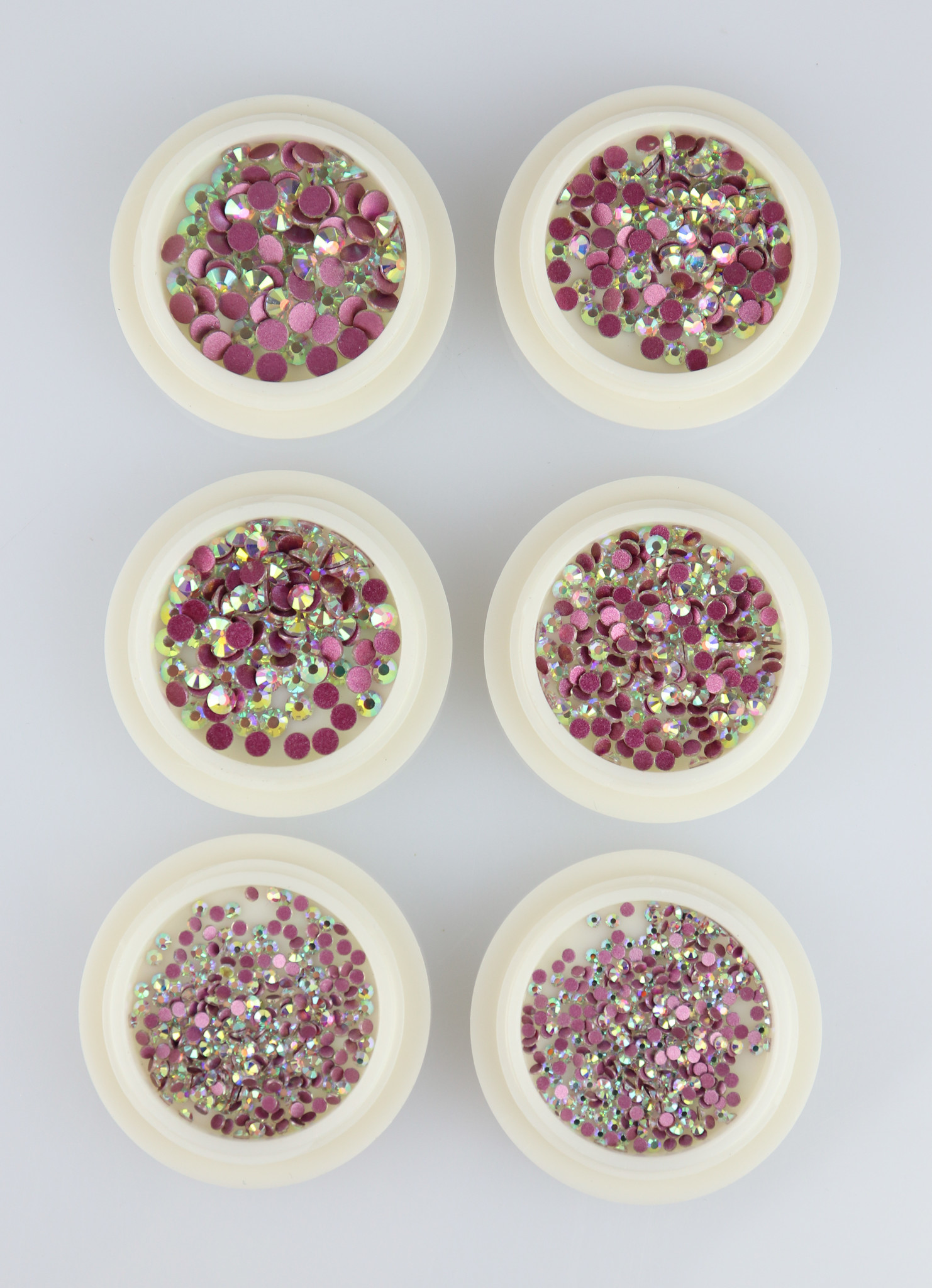 Prachtige strass stenen in verschillende kleuren en grootte. Deze set bevat 6 verschillende potjes.